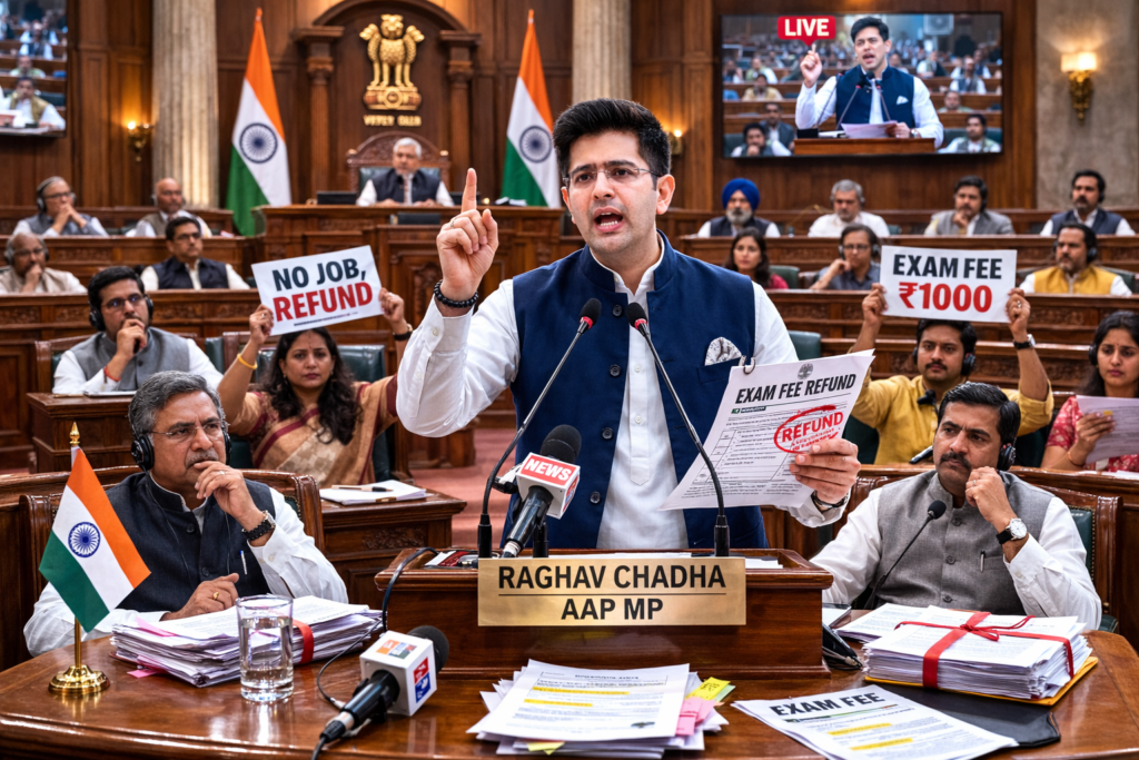 राघव चड्ढा ने कहा कि देश में हर साल सरकारी नौकरियों के लिए लाखों युवा आवेदन करते हैं। हर आवेदन के साथ उम्मीदवारों से ₹100 से ₹1500 तक परीक्षा फीस ली जाती है। लेकिन अंत में उपलब्ध पदों की संख्या बेहद कम होती है, जिससे अधिकांश उम्मीदवारों को नौकरी नहीं मिल पाती।